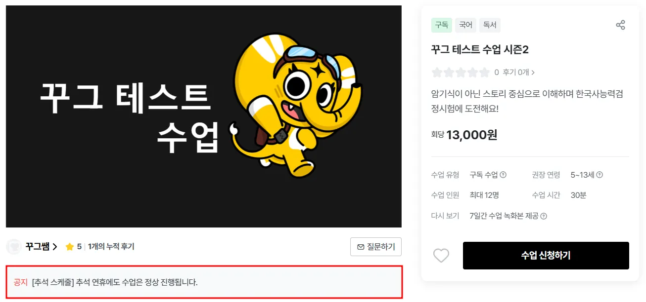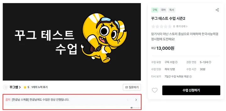 공개로 설정한 공지는 꾸그 홈페이지의 연결된 수업 상세페이지에서 즉시 노출됩니다.