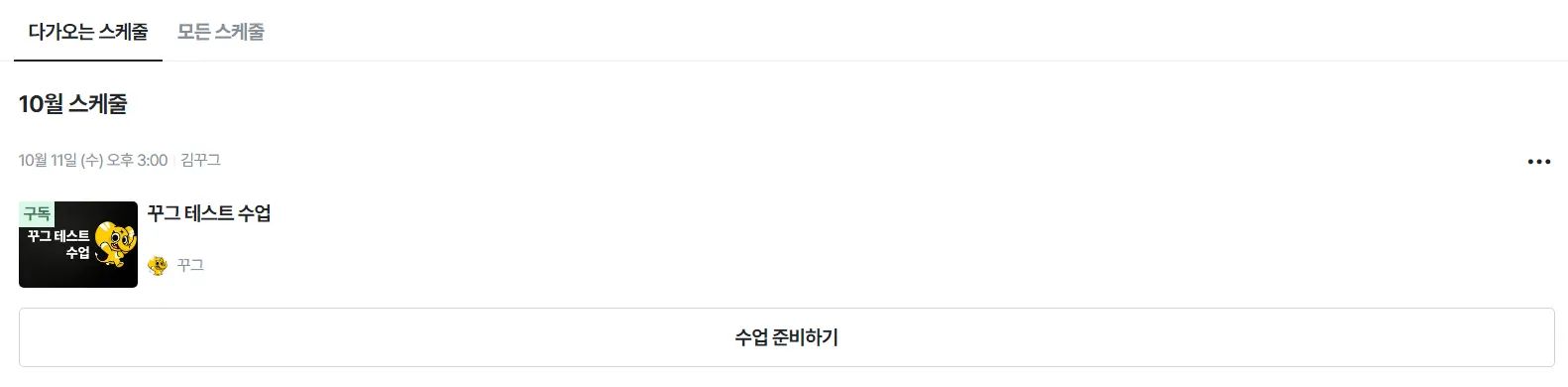 [스케줄에서 수업 준비하기를 누르면 보여지는 화면]