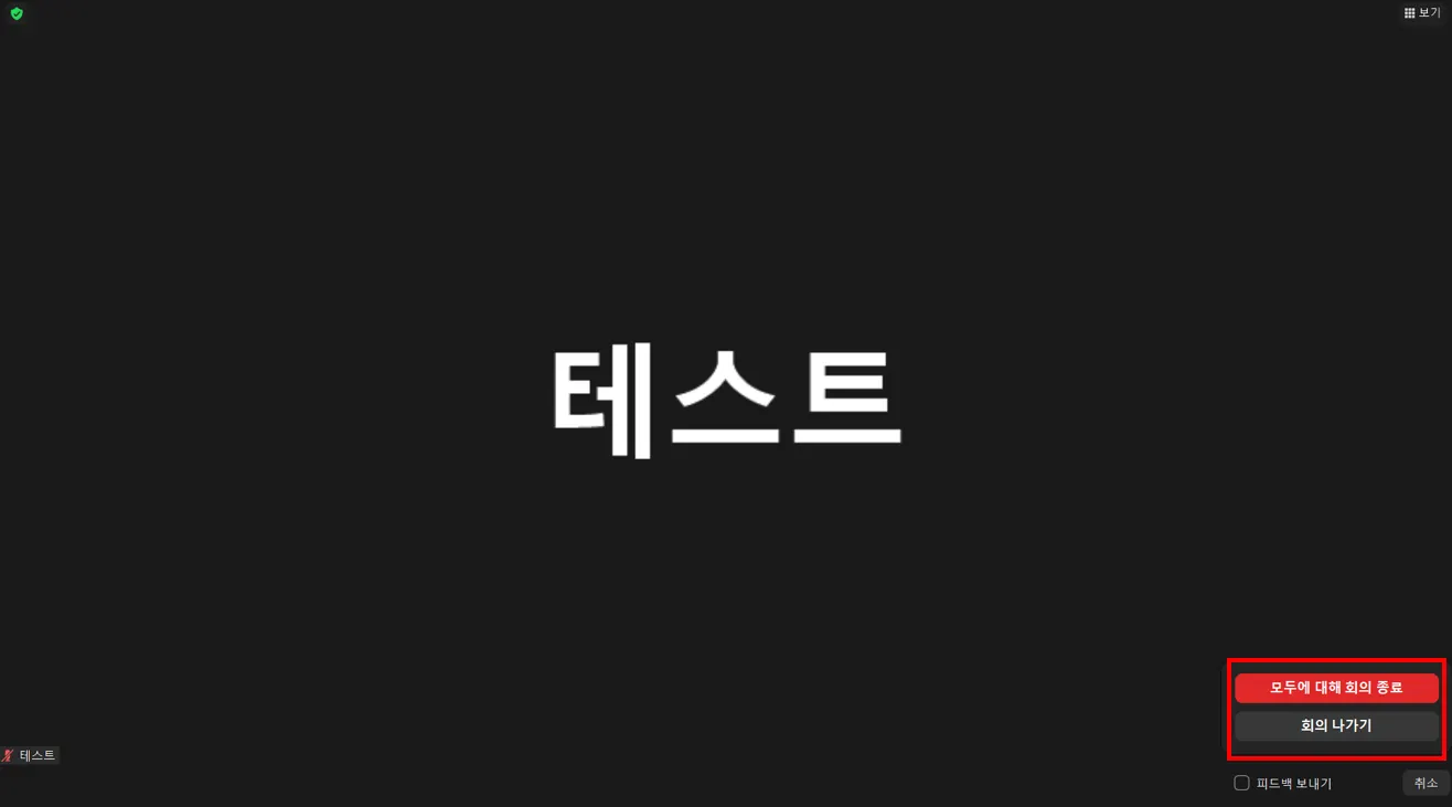 모두에 대해 회의 종료로 퇴장할 경우 해당 스케줄의 Zoom 회의실이 종료되어 수업 진행에 문제가 발생할 수 있는 점 참고해 주시기 바랍니다.
