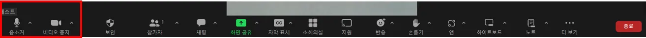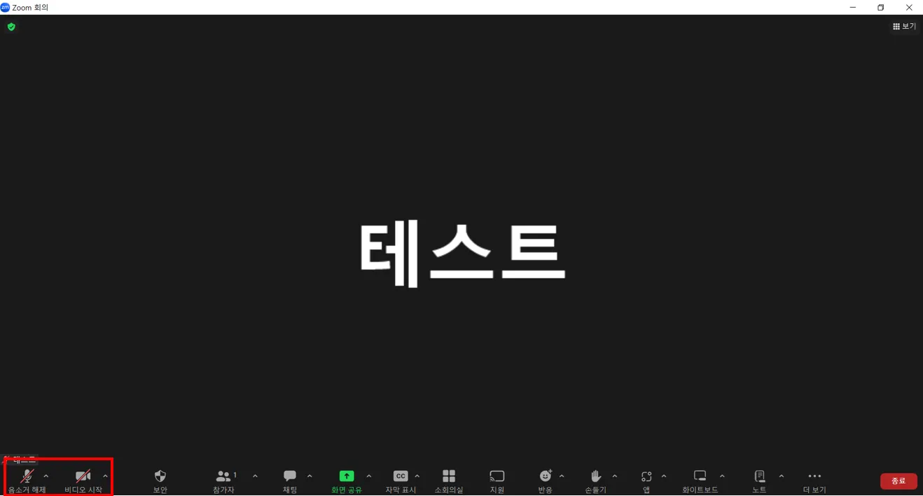 다만, 회의실 하단 음소거, 비디오가 연결 및 활성화 되지 않을 수 있으니 모두 활성화로 변경해 주세요.