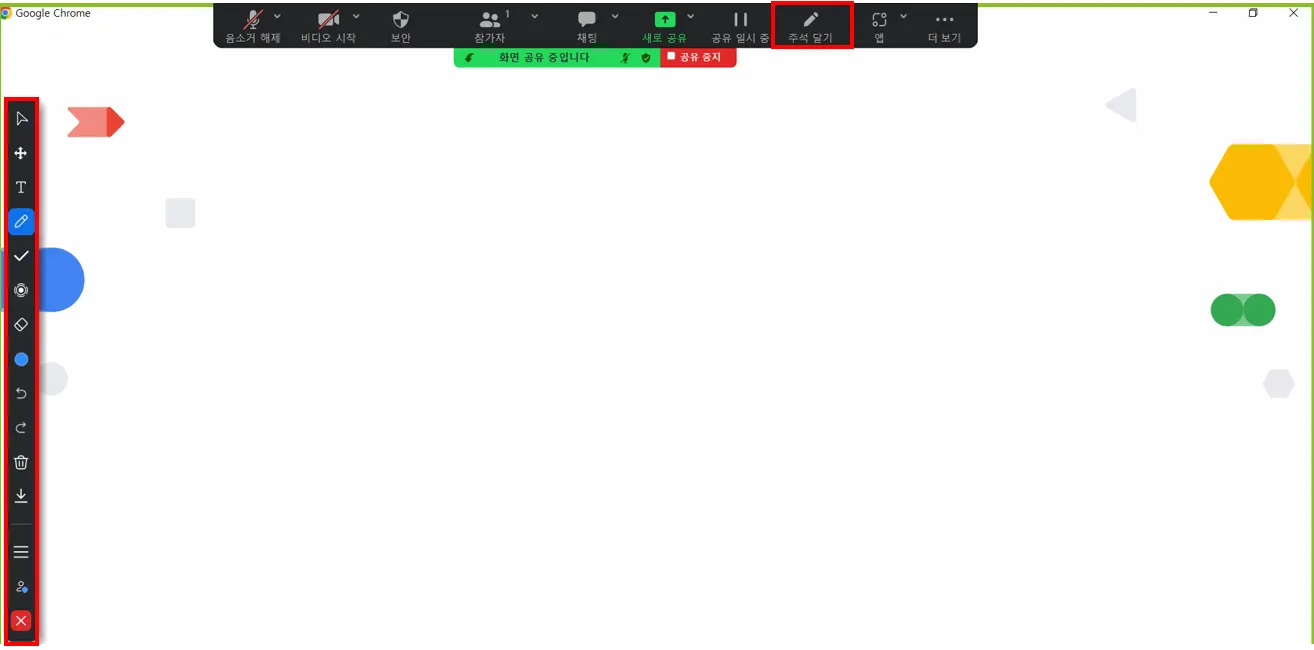 현재 공유 중인 화면에 필기하며 수업할 수 있습니다.