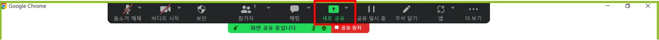 현재 화면이 아닌 다른 화면을 공유하고 싶다면 반드시 새로 공유 버튼을 눌러주세요.