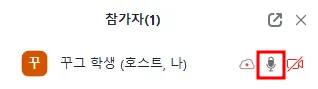 [강의실 화면 하단 메뉴바 > 마이크 모양 '음소거 해제'] 버튼이 보이신다면,