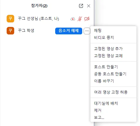 상황 해결 후에는 다시 해제하여 수강생이 수업에 참여할 수 있도록 지도 부탁드려요.