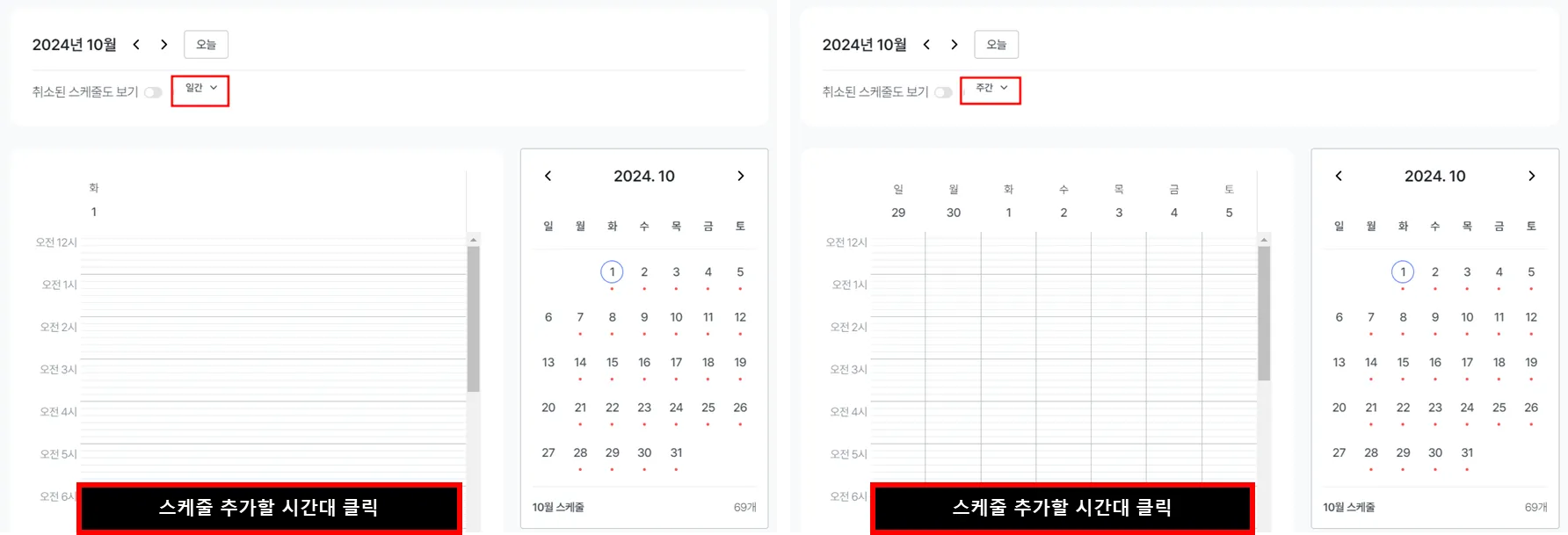 아래 방법을 참고하셔서 자유롭게 스케줄을 열어보세요.