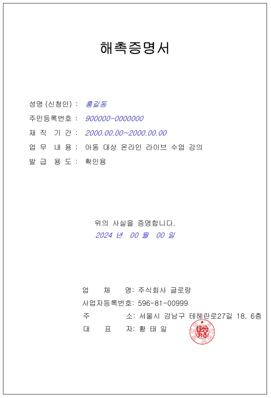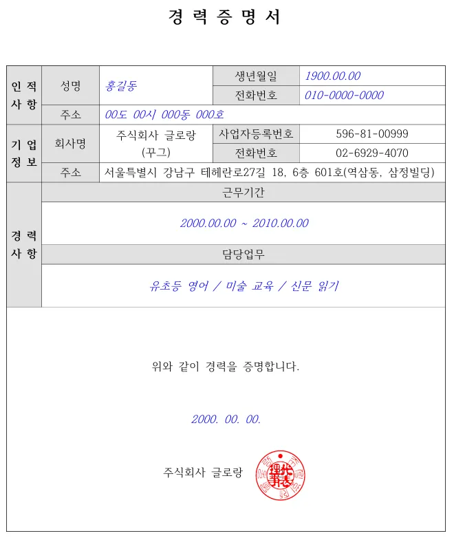 현재 꾸그에서 수업을 진행하고 있거나, 계약기간 동안 진행했던 경력이 있음을 증명하기 위한 문서입니다.