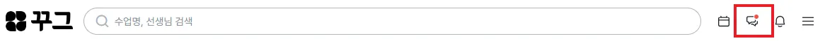 새로운 대화 메세지를 받으시면 [꾸그 홈페이지 > 우측 상단 말풍선 아이콘] 옆에 빨간 점이 표시됩니다.
