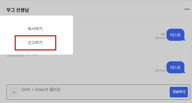 아래의 내용에는 별도로 답변하지 않으셔도 되며 원하실 경우 신고해주시면 꾸그에서 빠르게 확인하도록 하겠습니다.