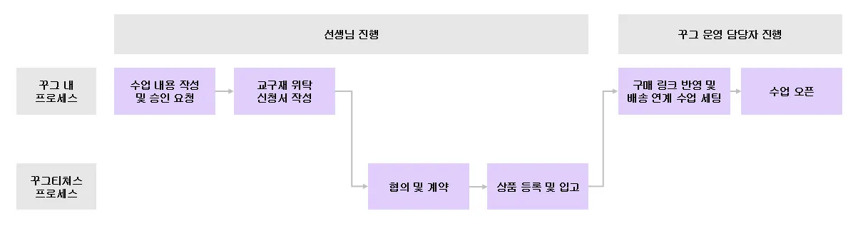 교구재 판매 링크 생성이 완료되면, 꾸그 운영 담당자가 수업 승인 및 배송 수업 오픈 절차를 진행합니다.